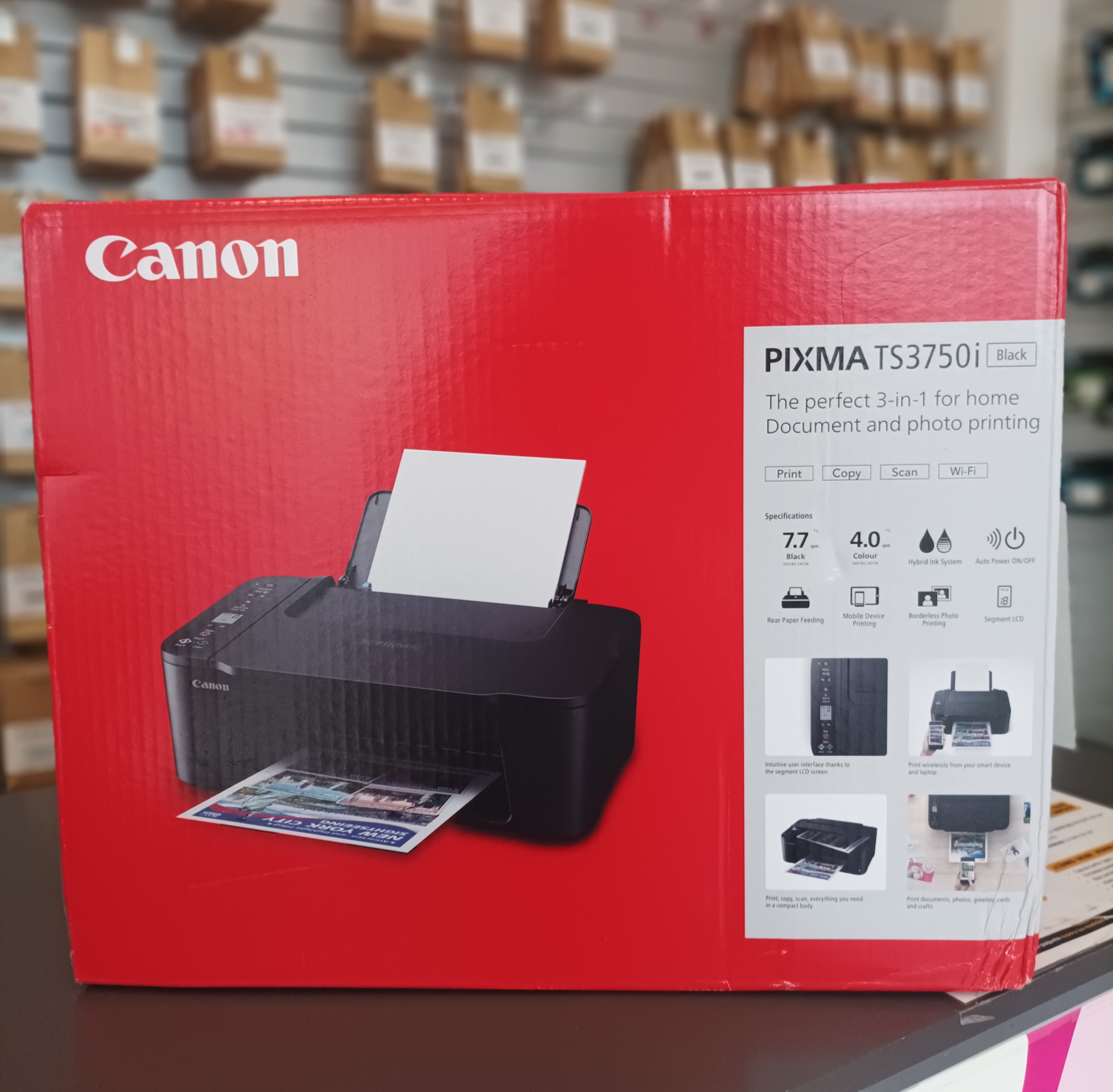 MULTIFUNCIÓN: Imprime - Copia - Escanea. Con WIFI. Velocidad de impresión: 7.7 ppm (negro), 4ppm (color) Capacidad máxima de entrada de papel: 60 hojas. Nº páginas cartuchos aprox.: 400págs. (negro), 300págs. (color) Pantalla LCD.