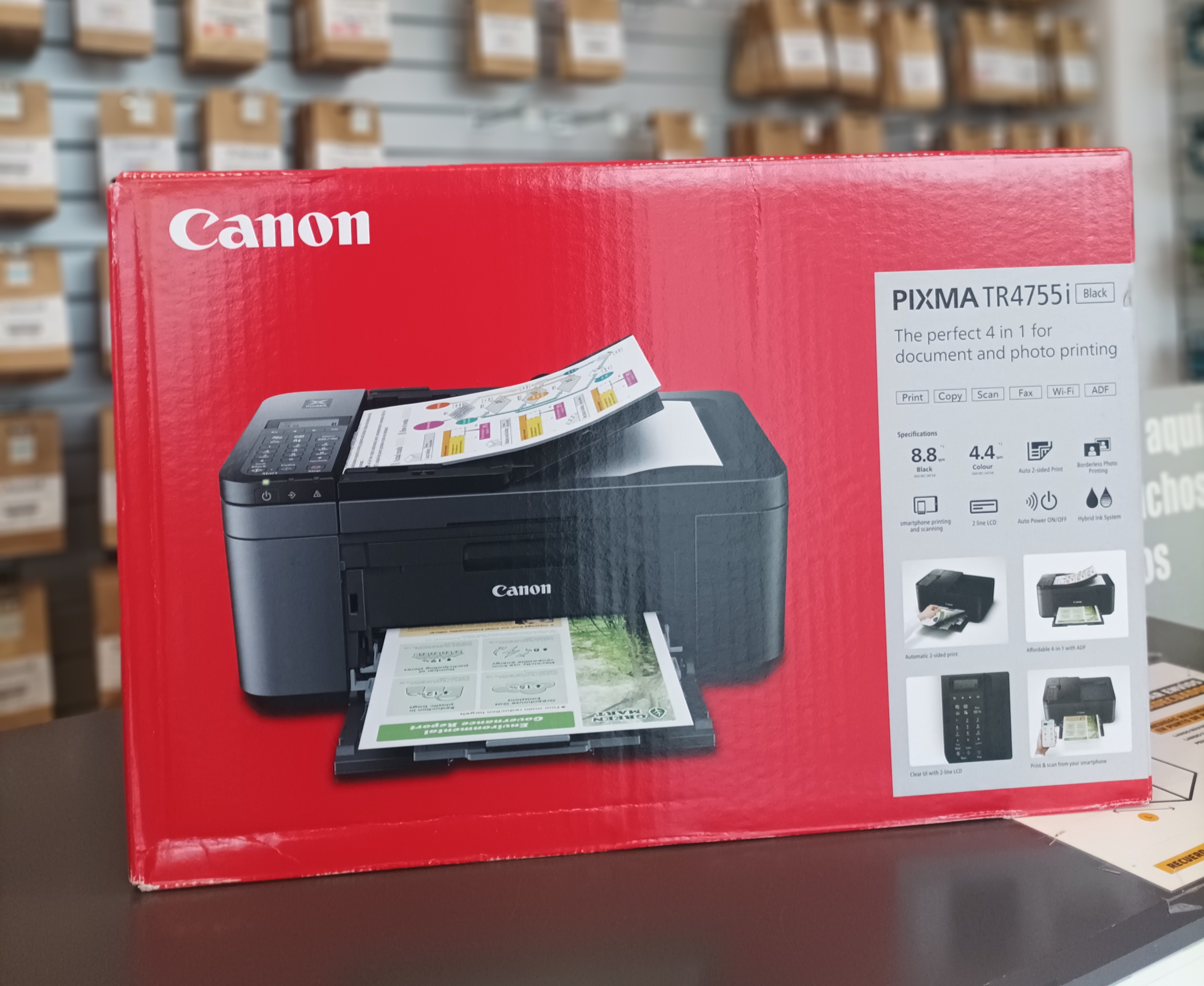 MULTIFUNCIÓN DÚPLEX: Imprime - Copia - Escanea. Con WIFI. ADF (Alimentador de páginas). Dúplex: impresión a doble cara automática. Velocidad de impresión: 8.8ppm (negro), 4.4 (color) Capacidad máxima de entrada de papel: 60 hojas. Capacidad máxima del ADF: 20 hojas Nº páginas cartuchos aprox.: 400págs. (negro), 300págs. (color) FAX. Pantalla LCD.